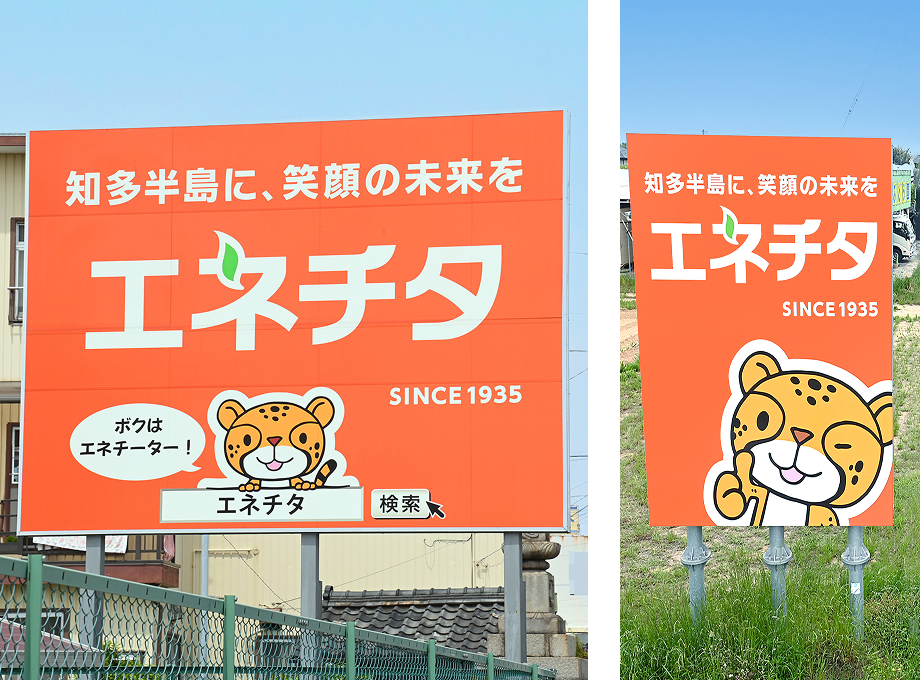 看板で視線を集めるには、キャラクターや顔写真の活用が非常に有効です。人は文字情報よりも「人の顔」や象徴的なビジュアルに反応しやすいことが、心理学的にも知られています。サイズや媒体が変わっても見た目を統一することで印象が重なり、「あのオレンジのチーターの会社」のように、企業のブランドが刷り込まれていきます。