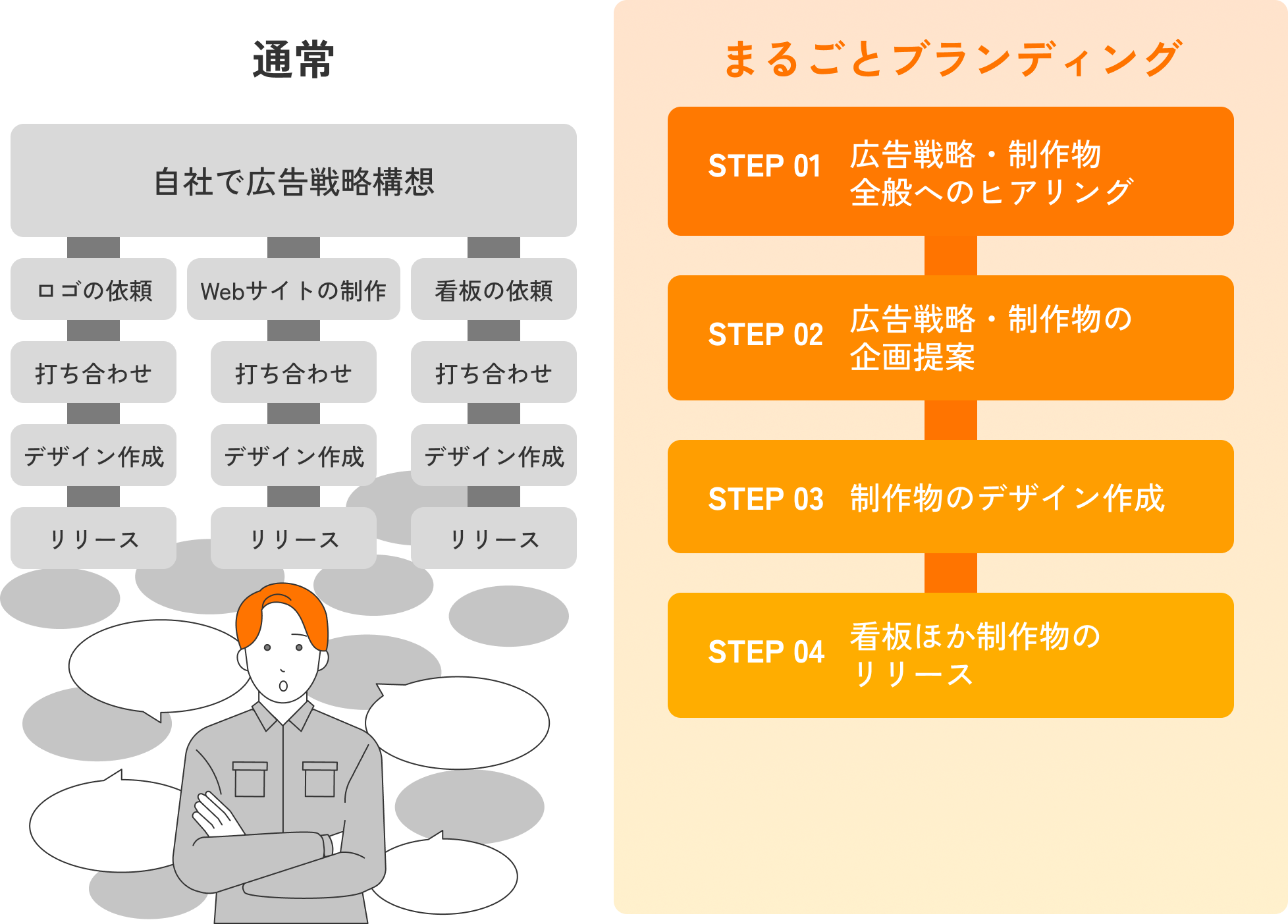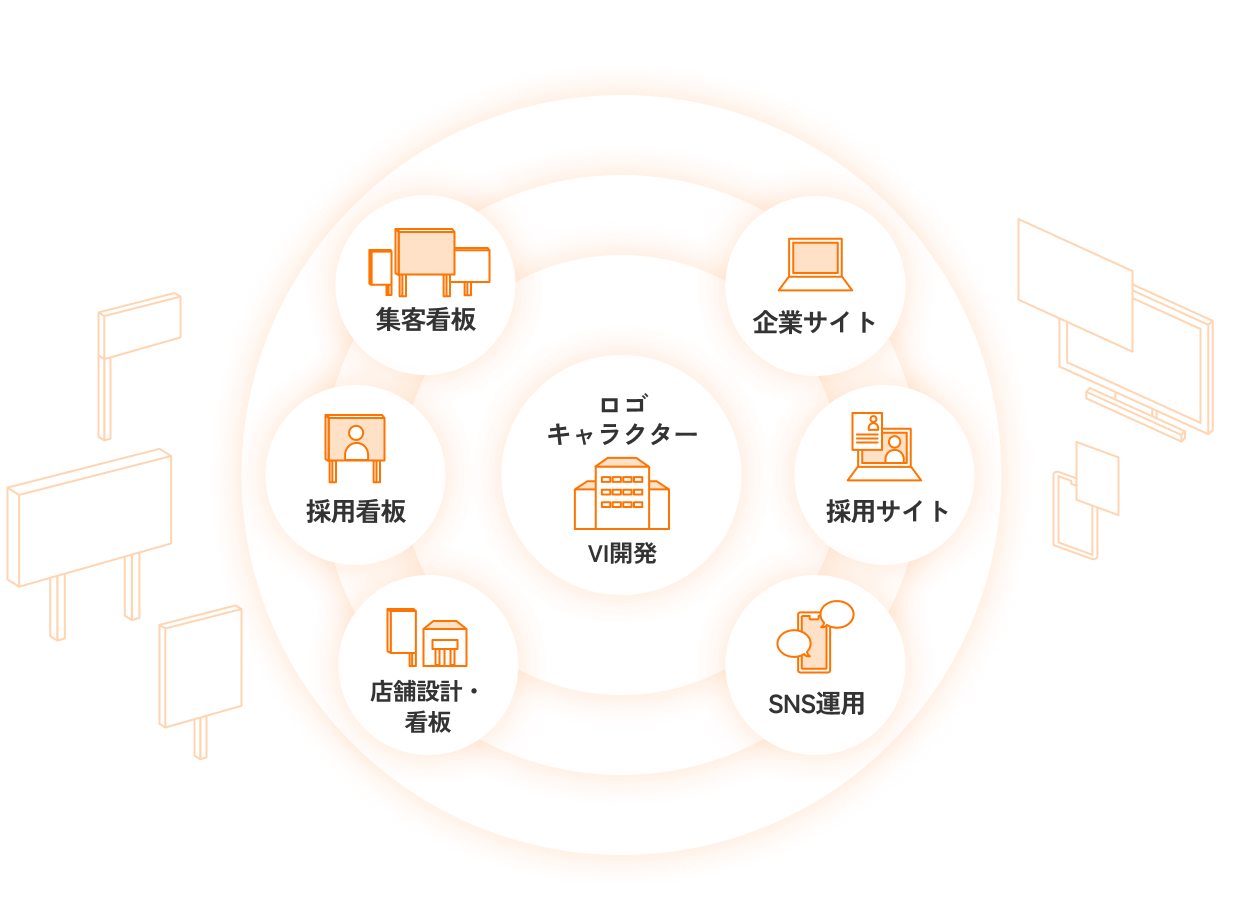 看板も、ロゴも、キャラクターも。 ラクして、一気に カタチ に。